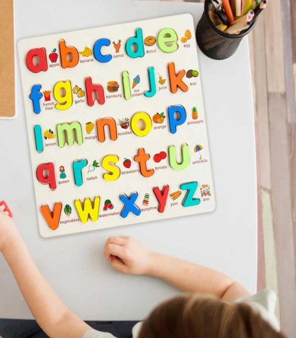 Educational Wooden Alphabet Puzzle – Lowercase Letters & Early Learning Vocabulary Board – FS037