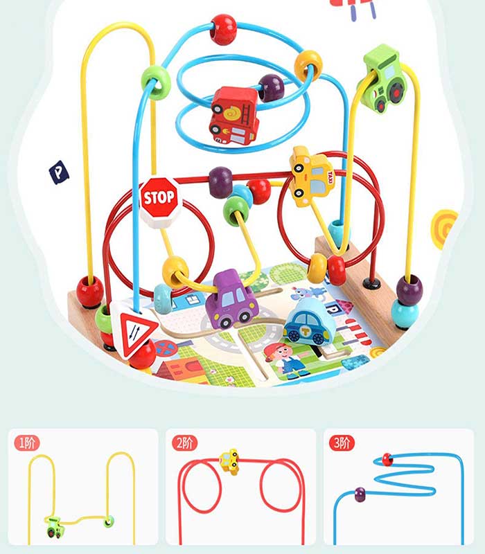 Perched atop the trailer is a multi-dimensional bead maze. As children guide the chunky, multi-shaped beads through the loops and spirals of the soft-coated wire tracks, they are secretly mastering complex cognitive tasks. This movement mimics the fluid motions required for pre-writing skills, while the act of navigating “over and under” helps build a foundation for mathematical thinking and spatial logic.