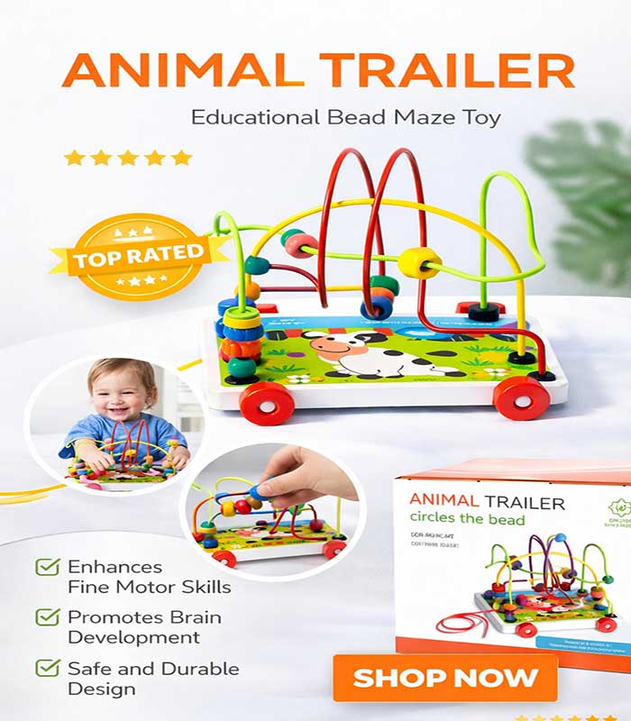 Unlock a world of discovery with the Animal Trailer Circle the Bead Wooden Toy, a timeless classic reimagined for modern early development. This isn’t just a toy; it’s a “brain gym” for toddlers. The base serves as a sturdy wooden trailer on wheels, encouraging your little one to practice their first steps as they pull their new animal friends across the room.