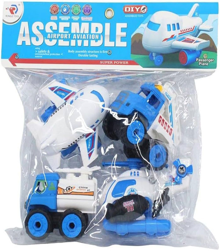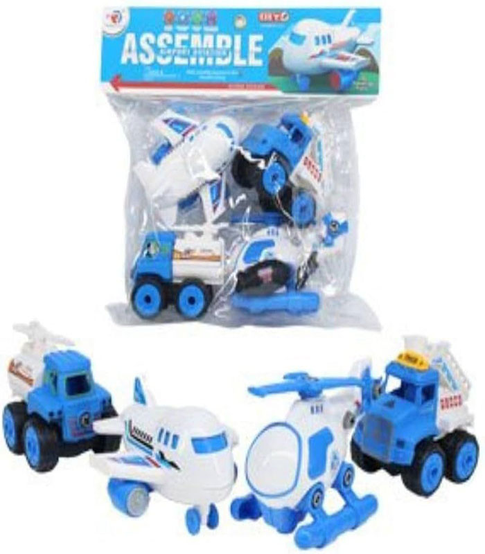 DIY Assemble Airport Aviation Play Set – 4-in-1 Take-Apart Engineering Vehicle & Aircraft Kit for Kids