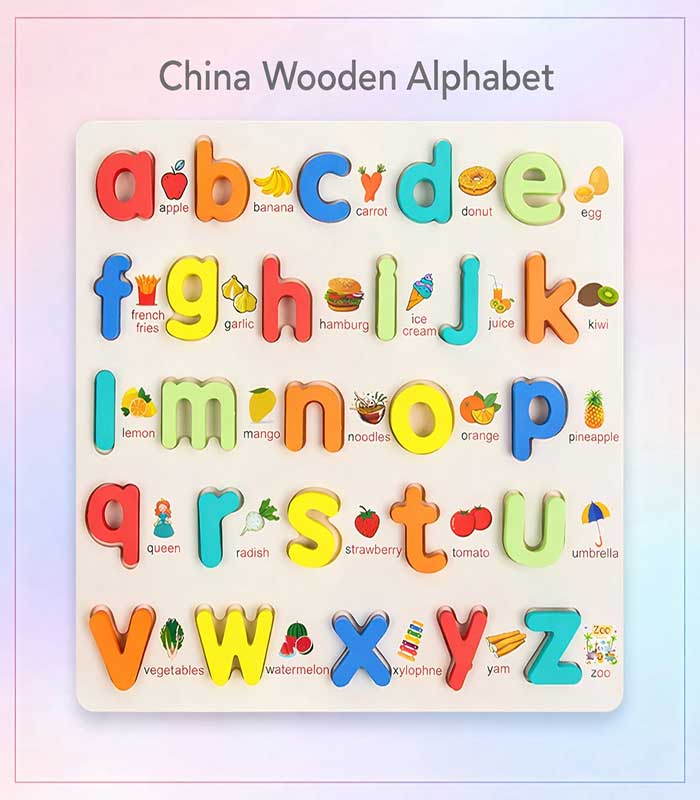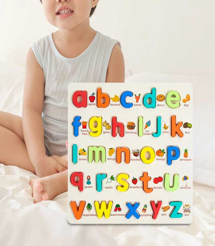 Educational Wooden Alphabet Puzzle – Lowercase Letters & Early Learning Vocabulary Board – FS037