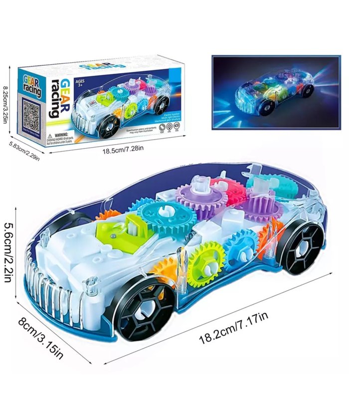 Ignite your child’s curiosity with the Transparent 3D Concept Gear Racing Car! This mesmerizing vehicle features a sleek, clear body that reveals a vibrant world of spinning mechanical gears. Equipped with dynamic 360° movement, rhythmic music, and a dazzling LED light show, it transforms playtime into a captivating sensory experience. Perfect for toddlers and pre-schoolers, this toy blends the thrill of racing with the wonder of early STEM discovery.