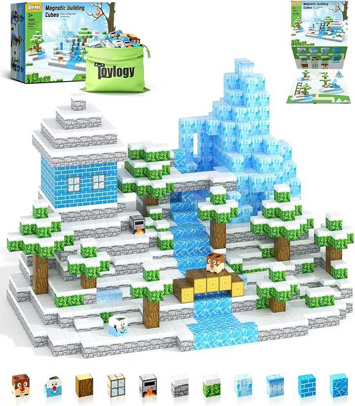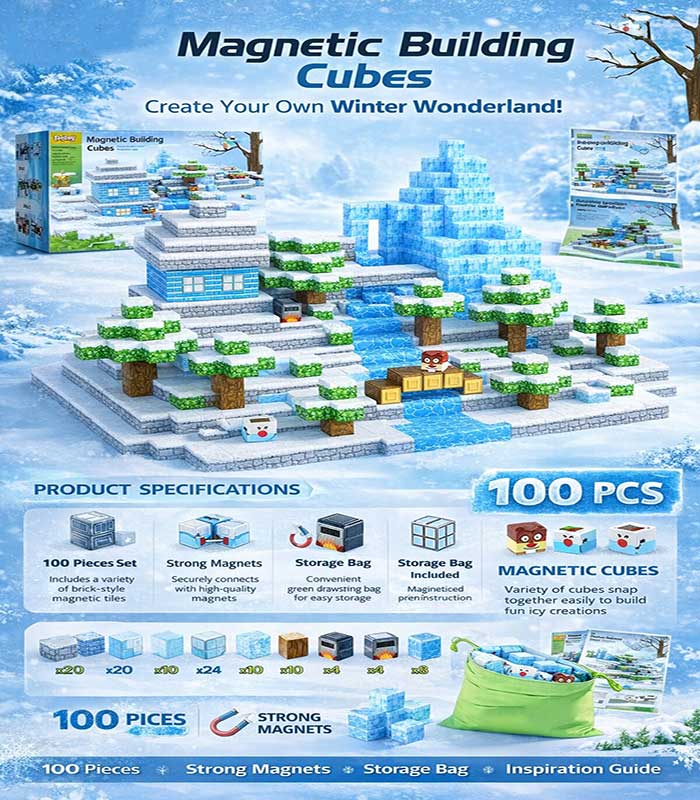 Toylogy 100-Piece Magnetic Building Cubes – Arctic Winter Wonderland STEM Construction Set for Kids 3+ – FS168