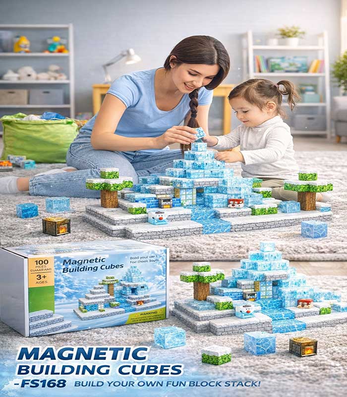 Step into a glittering winter landscape where your child is the ultimate architect! The Magnetic Building Cubes FS168 is more than just a toy; it’s a gateway to an Arctic adventure. Designed with a stunning blue and white “ice” aesthetic, this set includes a variety of specialized blocks—ranging from translucent “glacier” cubes to snow-dusted trees and character blocks—that bring any frozen kingdom to life.